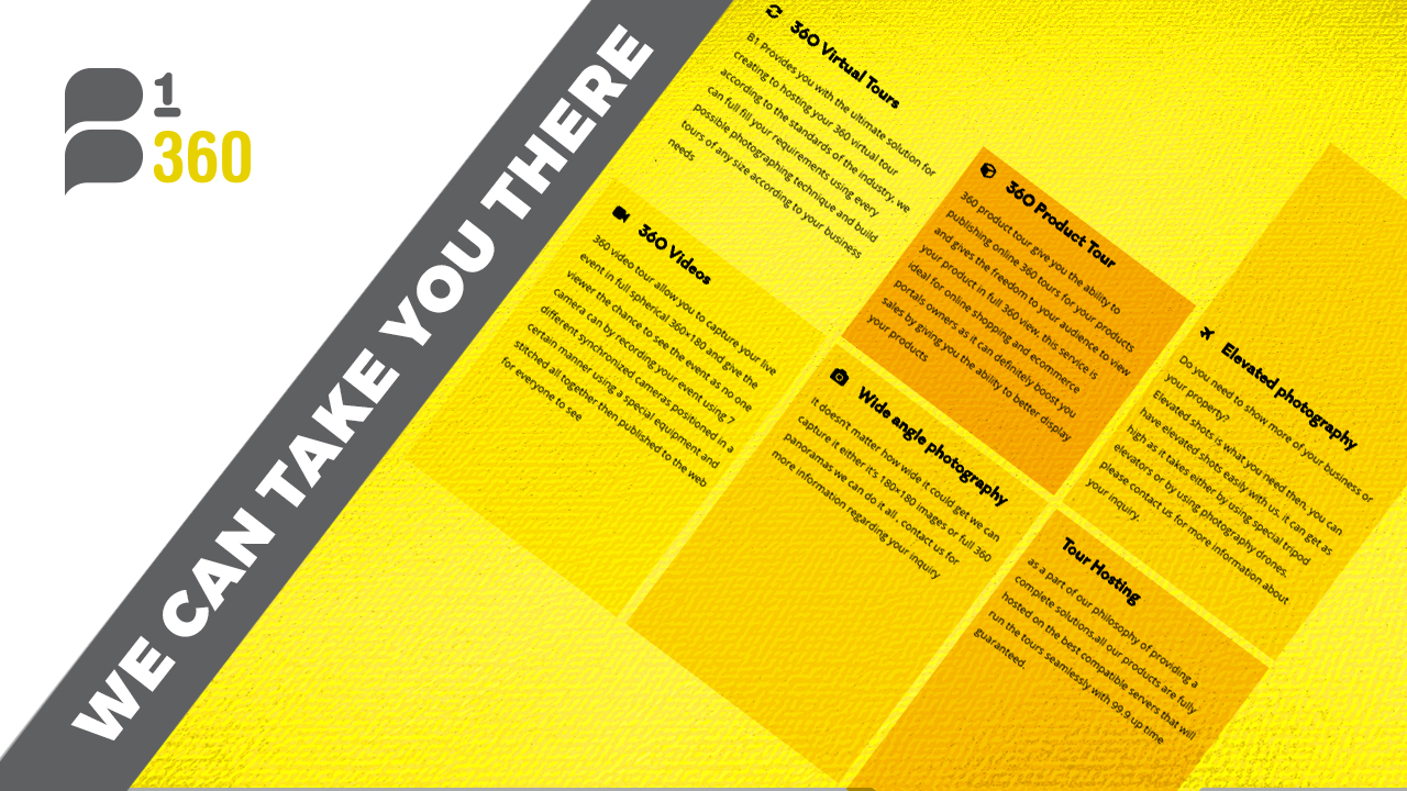 B1 Group provides the highest level of hosted Virtual Tours on the market. We do this through our detailed approach to 360º photography and onscreen interface elements that provide an engaging, stimulating experience for the visitors that immerses them in the surroundings and gives them the feeling they are actually there. B1 Group is the only cetified member from Kuwait of IVRPA (International Virtual Reality association) and one of only a hand full in the region.